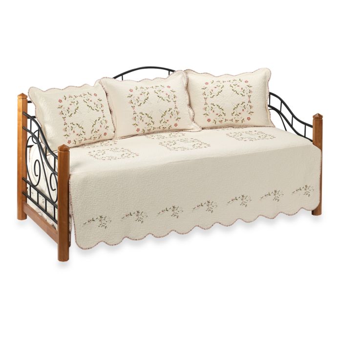 Intrigue Chenille Ruffled Flounce Daybed Bedding Set in ... from i.pinimg.com Looking for the best daybed that has good quality? They turn it into a versatile piece of furniture. Shop for daybed bedding sets at bed bath & beyond. Check out our daybed bedding selection for the very best in unique or custom, handmade pieces from our bedding shops. Shop a wide selection of daybed bedding sets in a variety of colors, materials and styles to fit your home. The quilted stitch pattern, the decorative 3 pillowcases, and the reversible shams deliver the desired daybed appearance. This daybed bedding set is easy enough to maintain. When you want a unique blend of charming functionality and elegance, try the kienna 5 piece day bed cover set.